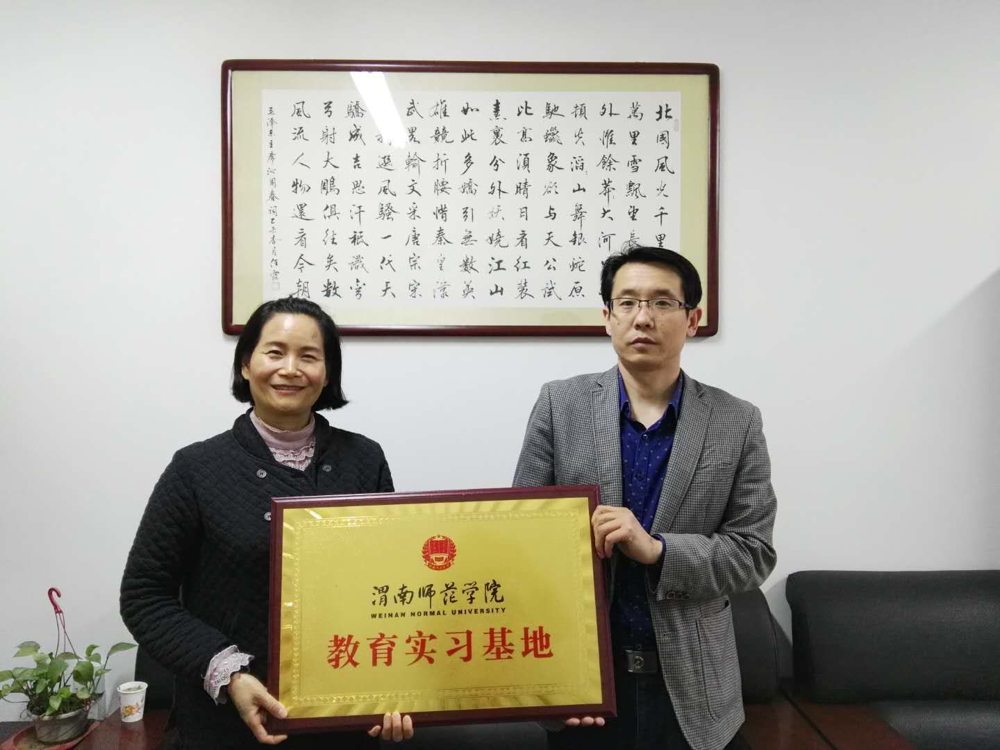在渭南育红小学,朱芳转代表学院和该校签订了共建实习基地协议书,并举行了实习基地挂牌仪式。