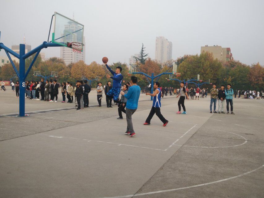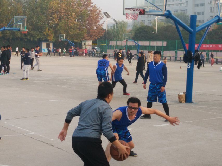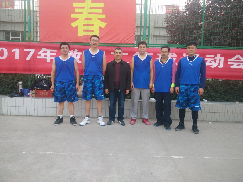 11月6日下午,公司教职工男队VS外国语学院教工队在8号篮球场开赛。上场队员有郭石磊、苟卫锋、张磊、杨方琦、吴代文老师。总支书记党旺旺和部分师生及啦啦队到现场为队员加油助威。