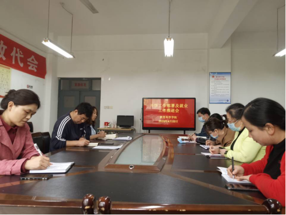 4月22日下午,suncitygroup太阳集团在2218会议室召开开学工作部署及就业推进会。学院处科级干部、教学秘书、全体辅导员参加了此次会议,会议由学院经理李西彩主持。