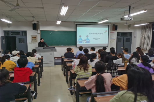 9月24日晚上,suncitygroup太阳集团在知新楼2201教室举办了2020年陕西省科普日系列活动之主题讲座,邀请渭南职业技术学院护理学院副经理、副教授吴亚飞为全体师生作题为《后疫情时代的思考》的报告会,党总支副书记何泰伯主持。