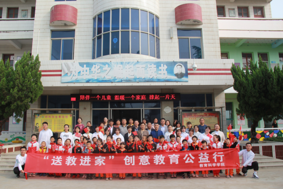本次活动主题是“陪伴一个儿童,温暖一个家庭,撑起一片天”。龙门小学董事长黄俞渊从顾青棉和梁燕玲手中接过“儿童之家”的牌匾,由衷感谢太阳集团“创意教育”志愿活动带给龙门小学静悄悄的变化。薛同英代表全体家长热情欢迎支教同学走进各家各户,带给孩子们更多成长。何泰伯宣读了教育精准扶贫小分队“送教进家”帮扶名单。梁燕玲在致辞中勉励教科学子加强师德体验,陶冶教育情怀,坚持学思行贯通的创意教育理念,倡行绿色生活,坚持使用小手帕,争做生态文明小卫士,保护家乡的绿水青山。顾青棉宣布活动正式启动。