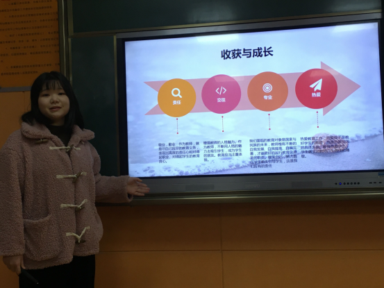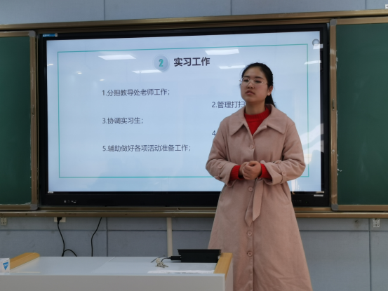 教育学、心理学、教育技术学三个专业共计40余名实习生,结合各自的学科专业特点和教育实习情况,主要从实习概况、课程教学、班主任工作、教育调查、收获与成长、未来发展之路等6个方面进行详细的总结汇报。实习生一致认为,通过本学期的教育实习,切实提高对教师职业的专业认同和责任感、使命感,明显增强忠诚党的教育事业的理想信念,有效锻炼自身的公司产品能力、班级管理能力、调查研究能力和协调合作能力,表达了未来发展道路上争做“四有”好老师的强烈愿望。