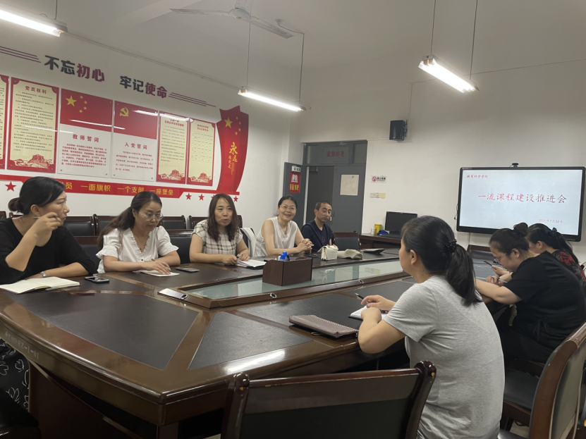 李西彩带领参会教师一起学习学校关于一流课程建设的相关文件及其申报条件。要求各课程负责人务必对照自身条件,寻找短板弥补差距。各课程负责人也相互讨论了在课程申报和录制过程中存在的各种问题,提出了对应的解决策略。