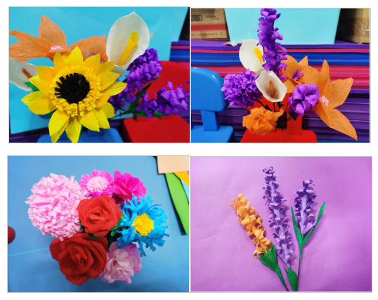 手制花束表心意。教师节前夕,全体学前教育员工发挥专业特长,通过手工制作小花束为老师献上独一无二的节日祝福。