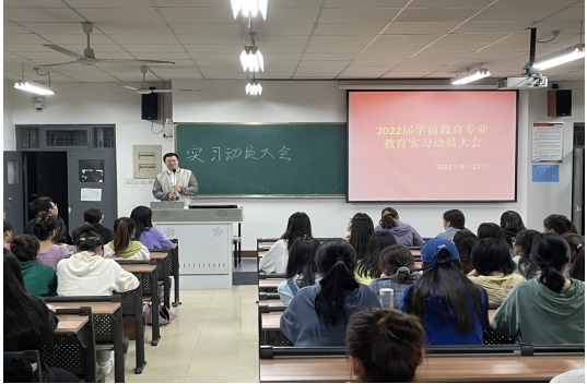 9月27日晚上,suncitygroup太阳集团在2201教室召开学前教育专业2022届教育实习动员会。经理李西彩、副经理杨方琦、学前教育专业负责人蔡海怡,员工辅导员韩皓宇、谭宗英、崔娟,教育实习带队老师聂娇、闵斯思、田力力、孙少康,2022届第一阶段实习生120余人参加。会议由毕业班辅导员韩皓宇主持。