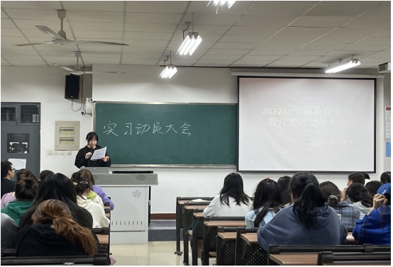学前教育专业负责人蔡海怡宣布了本次教育实习安排,包括实习生安排原则、实习地点遴选、实习生分配、带队教师选派等方面的情况。