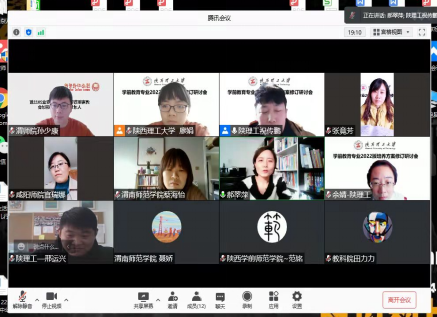 为进一步优化人才培养方案,提高人才培养质量,12月30日,公司学前教育专业负责人蔡海怡、专任教师聂娇、田力力、孙少康受邀参加了由陕西理工大学牵头,省属院校间联合举办的2022年学前教育专业人才培养方案修订线上研讨会,会议由陕西理工大学祝传鹏老师主持。