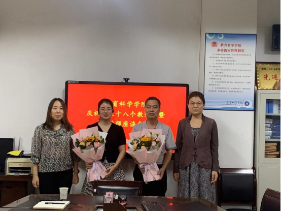 会议伊始,梁燕玲和李西彩分别给两位老师送上双节问候并赠送了鲜花和中秋月饼,预祝他们双节快乐。随后,梁崇科教授回顾了自己30多年的从教经历,他说:“1985年是新中国成立后的第一个教师节,也是他参加工作的第一个教师节,今年是自己职业生涯过的最后一个教师节”,自己已经历38个教师节,也亲眼目睹了学校38年的发展历程,目前发展已经超越了自己的预期,今后希望学校学院以后发展的更好。最后,结合内涵式发展,他建议进一步加强员工综合素质培养,全面提升师范生培养质量;凝聚团队力量,采取横向联合同类院校团队或者高水平大学团队,促进教学科研项目成功率。青年博士教师郝丹娜基于教学和项目申报建议学院建立精良教学科研团队,有了团队支撑、有侧重点引导,各个个去击破,有利于提升整体水平,另外,她提出员工学术素养应提前培养,开设相关方面的课程,借鉴同类院校成功做法,有利于促进员工科学研究能力提升。