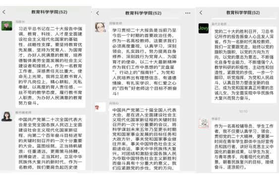党的二十大报告,立意深远、思想深邃、主题鲜明、内容丰富、催人奋进。作为一名党员干部,我将以饱满的精神状态和工作热情,积极把党的二十大精神融入到实际工作、学习中去,领悟实质内涵,增强责任意识,服务好学院工作各项任务,促进员工全面发展,不断提升师生的幸福感、获得感、满意感。我也将牢记总书记的重要嘱托,矢志不渝、笃行不怠,用实际行动持续为推进“幸福教科,创意教科,赋能教科”高质量发展,为全面建设社会主义现代化国家、全面推进中华民族伟大复兴贡献力量。