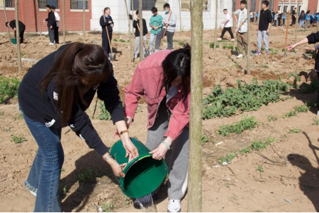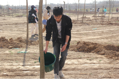 植树现场,志愿者按划定区域分组合作进行,三四人一组,铲土、扶苗、回填、培土、浇水……大家配合默契,干劲十足,合力栽下100株树苗,为富平校区生态文明建设增添靓丽风景线,也为学校创建“省级文明校园”工作添砖加瓦。