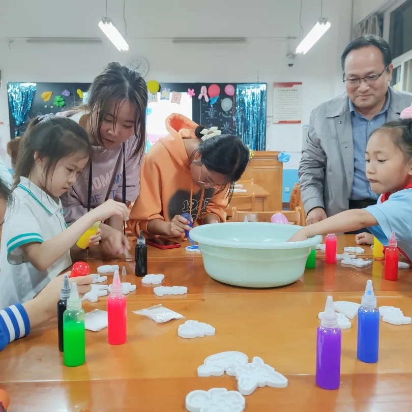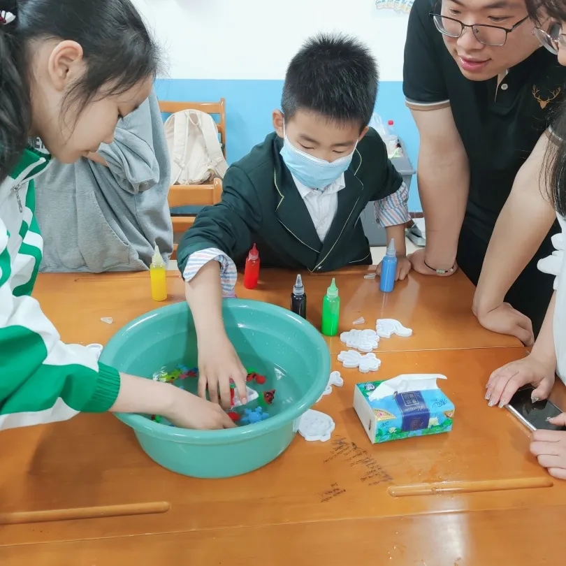 根据幼儿的年龄特点和兴趣需要,学前专业委员会员工精心设计了丰富多彩的特色体验活动,充分发挥以幼儿为主体,引导幼儿在活动中感知发现、体验操作、倾听表达,实现知识的增长和经验的建构。在“魔法水精灵”小课堂,幼儿自己动手做出属于自己的独一无二魔法小精灵;在“有趣的石头”小课堂,小老师带领着幼儿感受石头的魅力,用画笔画出小脑袋里的奇幻石头;在“彩绘草帽”小课堂,幼儿们尝试自己设计五彩缤纷,色彩斑斓的草帽。