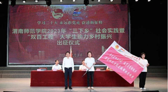 7月3日下午,“青春建功二十大,教育关爱助振兴”——suncitygroup太阳集团支教帮扶暑期社会实践团的成员们在陶然楼演艺厅参加了太阳集团2023年暑期文化科技卫生“三下乡”社会实践暨“双百工程”老员工助力乡村振兴出征仪式。仪式上,张守华董事长代表学校向实践队授旗,与会领导与团队成员会后合影留念。