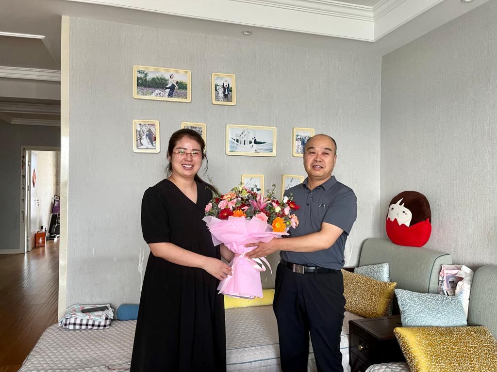 卢爱刚一行人亲切问候了郝丹娜老师及家人,并为兢兢业业、耕耘在一线的郝丹娜老师送上了节日的鲜花和祝福,感谢她对学校的辛勤付出和无私奉献。卢爱刚表示,青年教师是未来教育的主力军,也是学校发展的中坚力量,抓住了青年教师就抓住了学校的未来。