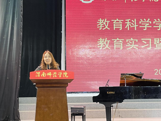 随后,马雷蕾从教育实习目的、教育实习工作时间进程、教育实习任务、纪律要求和成绩评定等方面,细致讲解2024届毕业生教育实习工作实施方案,帮助同学们进一步明确实习安排和任务。