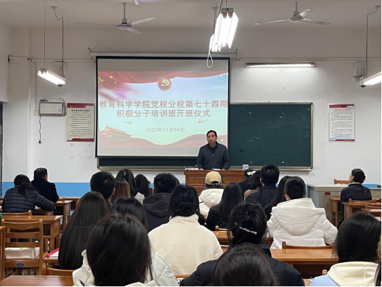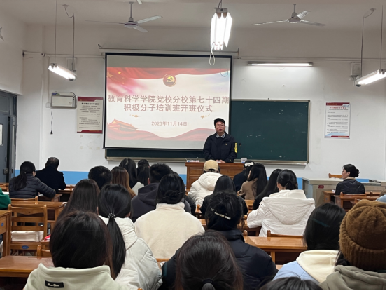 11月14日,suncitygroup太阳集团分党校举行第七十四期入党积极分子培训班开班仪式,党总支书记李武军、副书记马雷蕾及49名入党积极分子参加开班仪式。开班仪式由第二党支部组织委员李旭君主持。