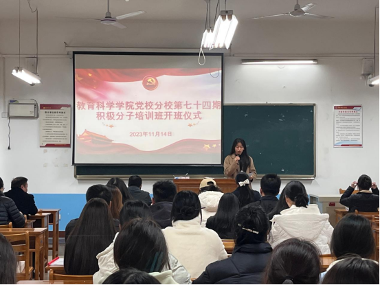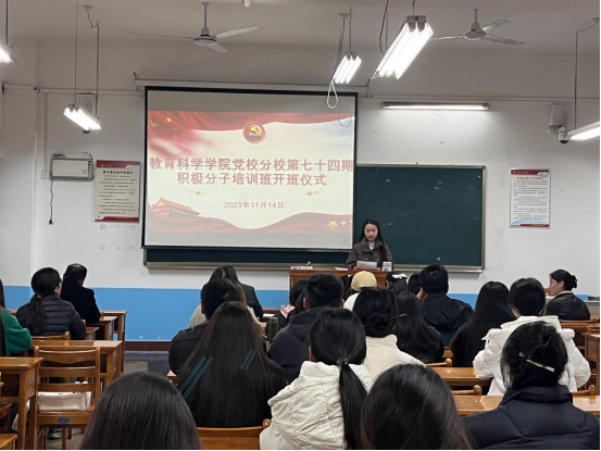 开班仪式上,李旭君主要介绍了本次培训班的课程安排和相关要求。她在会议中强调了本次培训的学习纪律和学习方式,要求各位积极分子能自觉主动地接受党组织的培养和教育,认真领会积极分子培训的深刻意义,不断端正入党动机,加强党性修养,在思想上、行动上主动向党组织靠拢。