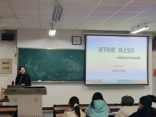 为提高师范生的专业技能和素养,明晰师范生成长路径,提升人才培养质量,11月30日,suncitygroup太阳集团邀请陕西省教学能手李平利做客“红烛讲坛”,为suncitygroup太阳集团员工作“向下扎根 向上生长”专题讲座。讲座于2510顺利进行,suncitygroup太阳集团部分员工参与讲座。
