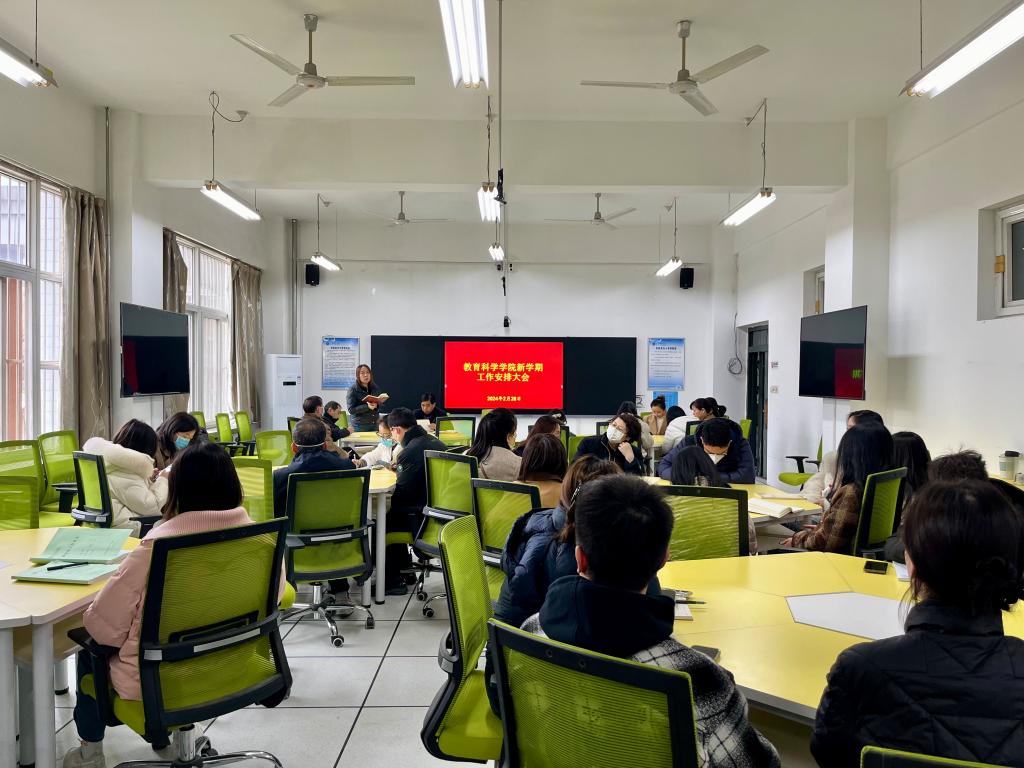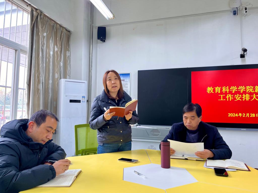 首先,经理李西彩传达了学校2024年工作安排会议精神,并总结和肯定了学院2023年取得的成绩,指出存在的问题与不足。她强调2024年学院将坚持以团队建设为引领,以教学和科研工作为核心,以审核评估和师范专业认证为重要抓手,紧密围绕学院2024年“10个1”的工作要点,整合优质资源,打造精品团队,增强社会服务能力,深化院校地协同创新机制,全面提升学院办学水平,全员凝心聚力,务实笃行,奋力开创学院高质量发展新局面。随后,学院各分管领导具体安排了近期工作。