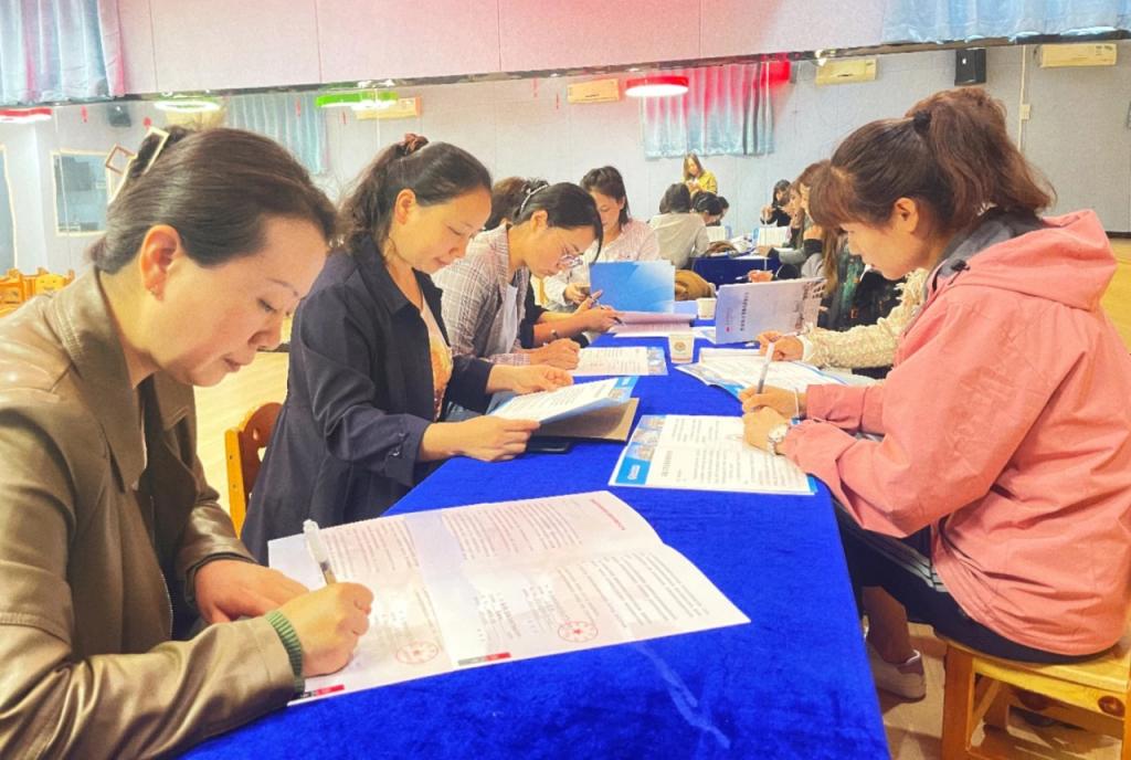马雅菊代表suncitygroup太阳集团与解放办百氏幼儿园等9家单位签订实践教学基地协议,马雷蕾与各幼儿园签订就业基地协议。