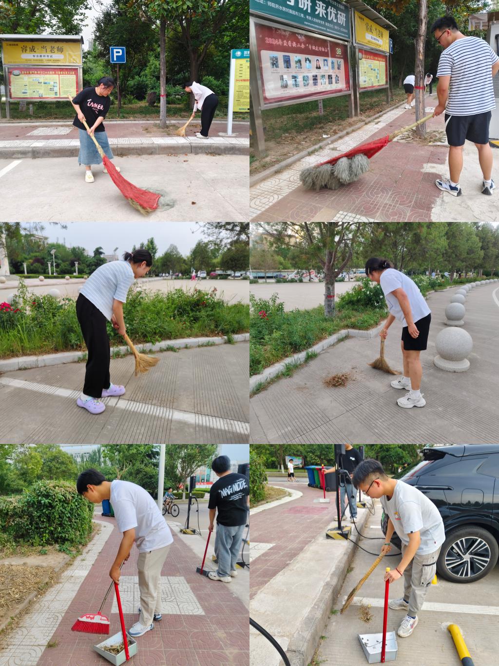 党员们积极响应号召,以党小组为单位分片包干,热情高涨地投入到劳动中。他们不怕脏、不怕累,对学院的公共区域进行了细致的清扫,包括捡拾垃圾、清理杂草、清扫地面等。尽管汗水湿透了衣衫,但他们的脸上始终洋溢着灿烂的笑容,展现出了新时代党员的良好精神风貌。