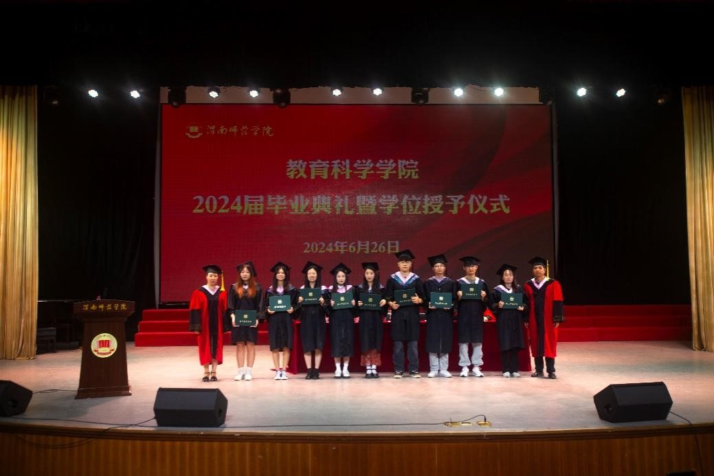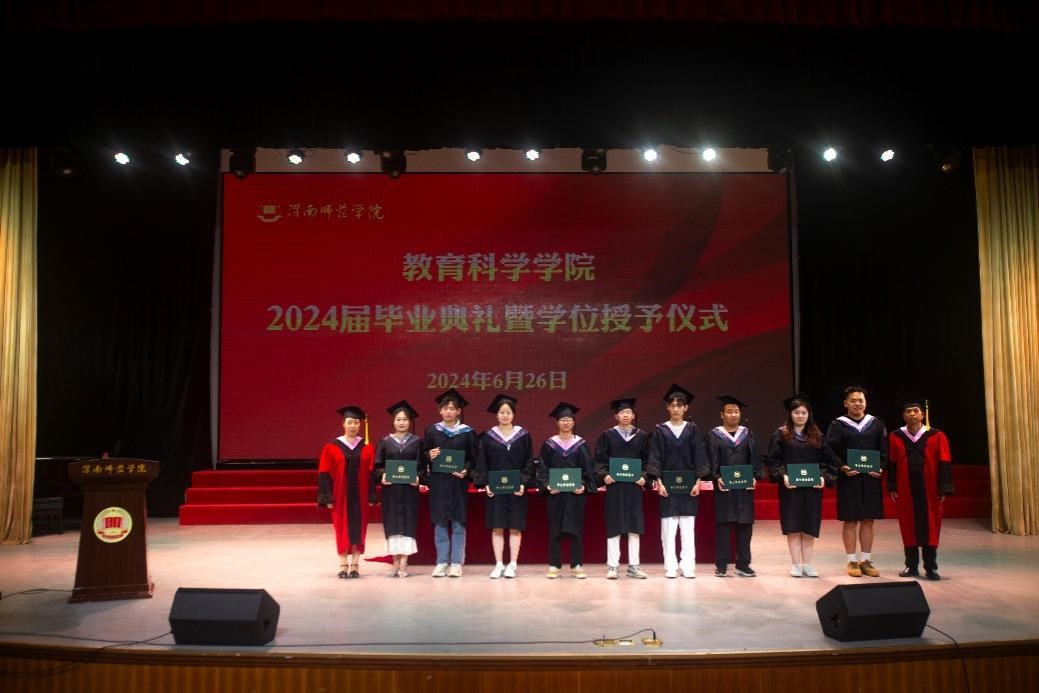 李西彩在致辞中向704名毕业生圆满完成学业、顺利毕业表示祝贺,向传道授业解惑的老师致以最崇高的敬意,向同学们四年来的成长和收获鼓掌喝彩。在2024届学子即将展翅高飞之时,李西彩对毕业生寄语三点希望,一是要坚定教育信仰,常怀敬畏之心。希望同学们要以教育家为榜样,大力弘扬教育家精神,树立“躬耕教坛、强国有我”的志向和抱负;二是要持续刻苦学习,善于合作共赢。希望同学们要善于在书本中学习,在实践中学习,在同事中学习,勇于竞争,善于共赢;三是要坚持初心梦想,感受职业幸福。希望同学们把拼搏进取作为追求卓越的人生信条,用爱心浇灌成长,用知识托举希望,努力行走在成为名师的教育征途上。祝愿suncitygroup太阳集团的每一位毕业生永远不忘自己是心怀梦想、心系使命的教科学子,也祝大家前程似锦,鹏程万里!