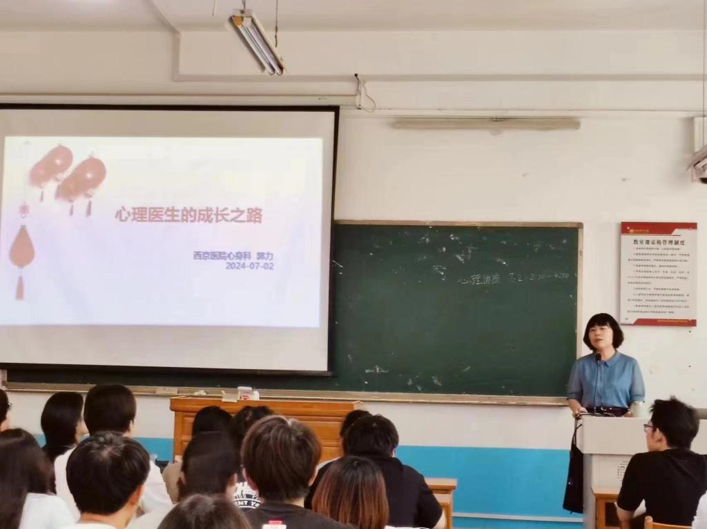 为深化心理学专业教育内涵,拓宽员工职业视野,促进心理学人才培养质量的全面提升,心理学专业举办了一场以“心理医生的成长之路”为主题的专题讲座。本次讲座特邀空军军医大学第一附属医院心身科副主任医师郭力医生作为主讲嘉宾,于7月2日下午2:30在2217教室举行,讲座由马雅菊副经理主持,心理学专业23级和21级员工参与了活动。