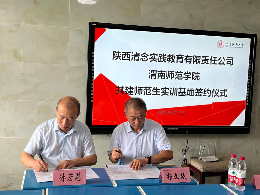 公司教务处处长孙宏恩与清念实践教育负责人郭文斌在与会人员的共同见证下,双方代表郑重签署了合作协议,这一动作标志着双方合作的正式启动,也开启了合作共育教育人才的新篇章。