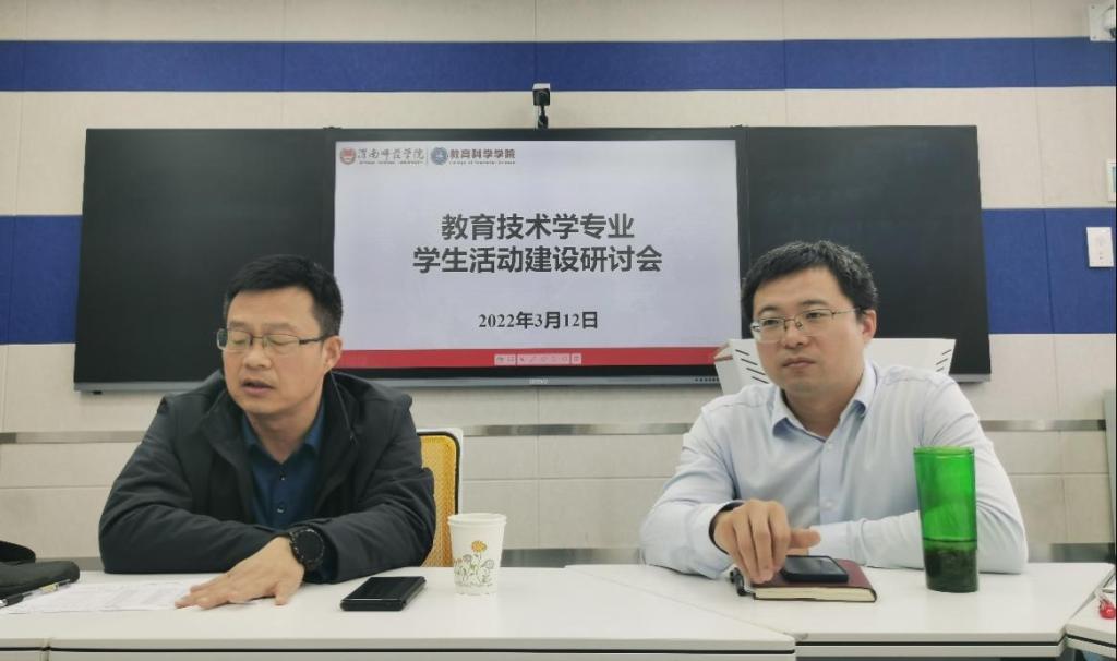 为了进一步强化教育技术学专业师范生公司产品实践能力,探索以赛促练,赛练结合的师范生教学技能,彰显教师教育特色,教育技术学专业于2022年3月12日在2207教室成功举办了系列师范生技能活动建设研讨会。会议邀请了传媒学院经理曹熙斌教授,杨方琦副经理主持会议。