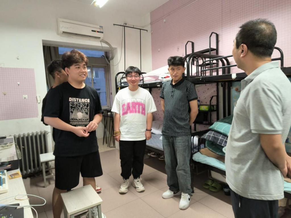 在走访活动中,学院领导对新生们的到来表达了热烈的欢迎和诚挚的问候。李武军提醒同学们在日常生活中要加强安全意识,并指出宿舍不仅是同学们生活和休息的地方,更是校园安全的重要组成部分。