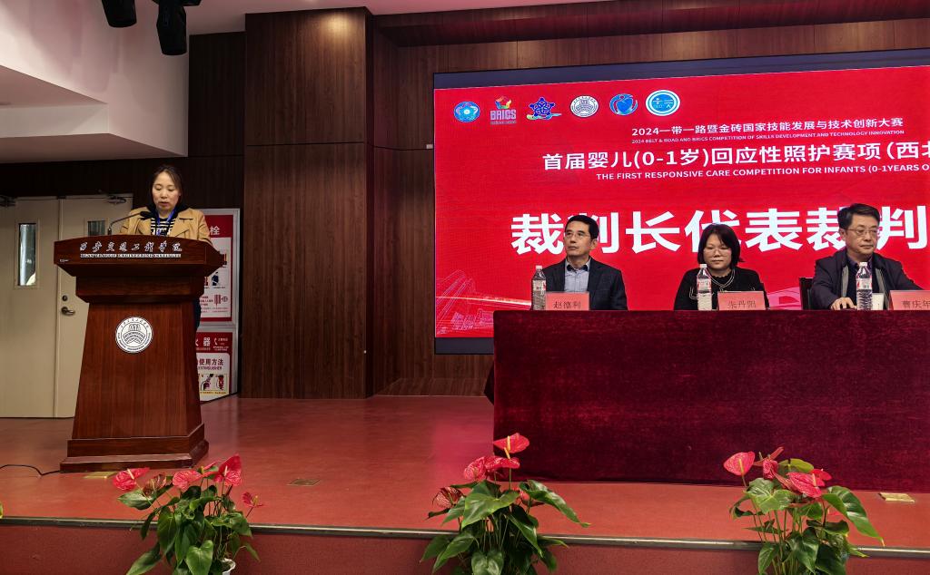 10月25日-27日,公司学前教育专业学科带头人、经理李西彩,办公室副主任孙少康,学前教育专业负责人蔡海怡等一行受邀赴西安市参加由“中国发明协会、教育部中外人文交流中心”等单位主办,“西安交通工程学院、北京心云天地科技有限公司”联合承办的“2024一带一路暨金砖国家技能发展与技术创新大赛—首届婴儿(0-1岁)回应性照护赛项(西北赛区)”。本次大赛,由李西彩担任裁判长,孙少康、蔡海怡分别担任中职组和教师组裁判。