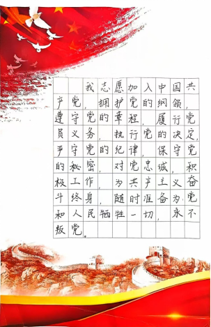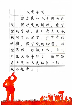 誓词映丹心,墨香传党情。公司党总支组织入党积极分子开展入党誓词硬笔书法篆写活动,通过一笔一画书写铿锵恢宏的誓词,增强党性修养,引导各入党积极分子边抄边学、边学边思、边思边悟,在书写中接受思想的洗礼。