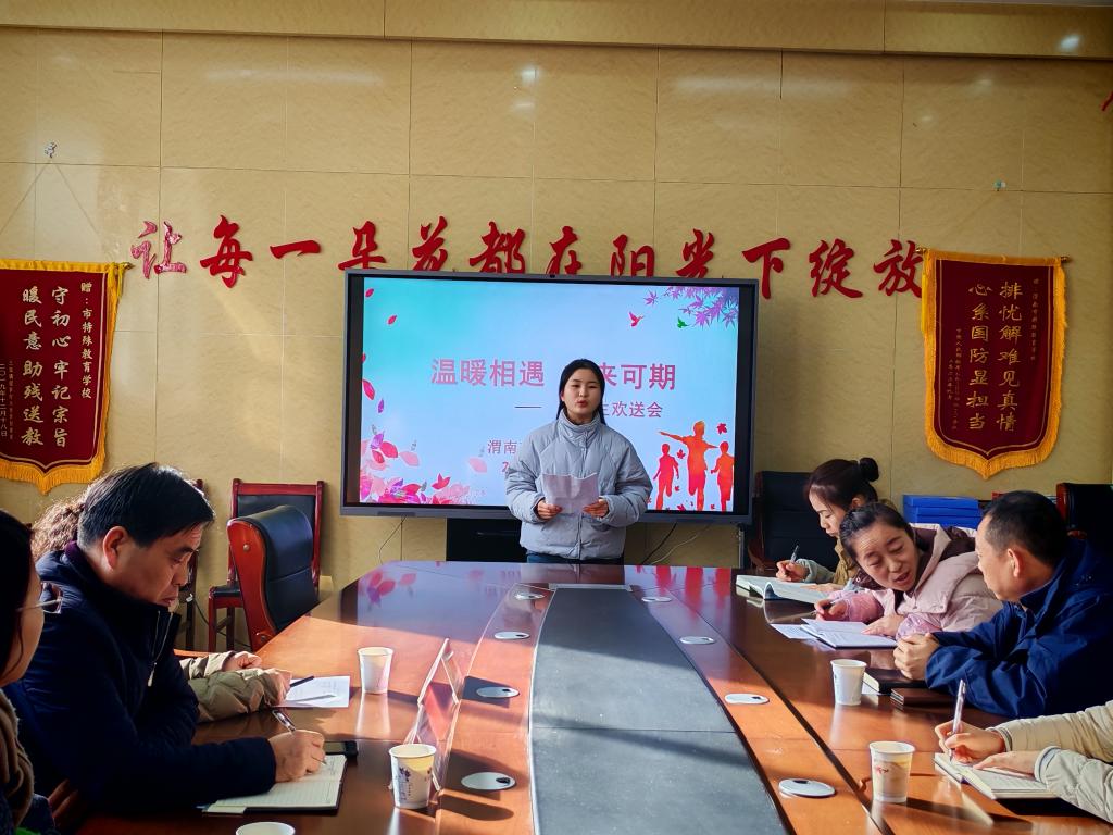 12月13日,渭南特殊教育学校举行了一场意义非凡的实习生总结欢送会。此次活动既是对公司实习生们三个月辛勤耕耘的全面总结,也是他们梦想启航的重要见证。太阳集团教育科公司党总支书记李武军、副经理马雅菊以及专任教师严苏风副教授受邀出席,共同参与了这一温馨而感人的时刻。