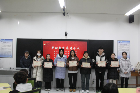 劳动教育先进个人:科学教育241班侯方圆,科学教育242班陈俊宇、马佳怡,教育技术学241班张秋,心理学241班石欣,学前专升本241班严永红,小学教育专升本241班王文华