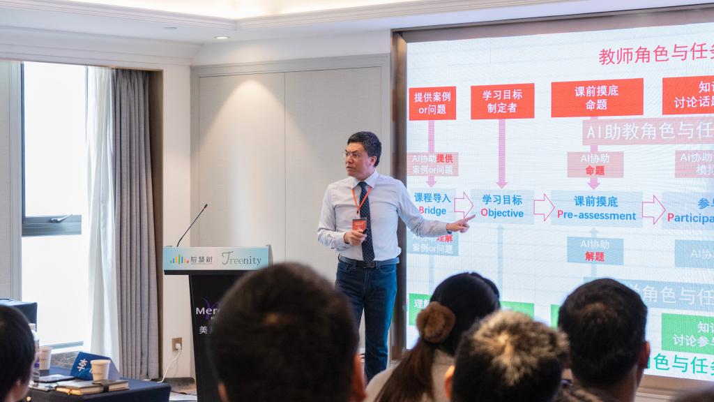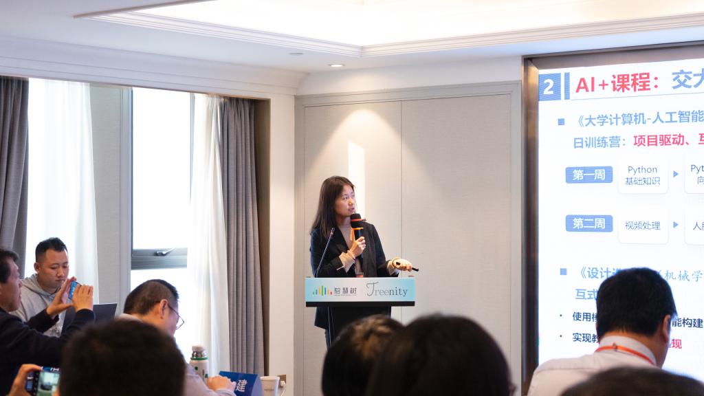 西北工业大学的张莹教授则以“AI助力开创公司产品新局面”为主题,分享了基于认知学习理论的数智化课程建设与创新实践,以及如何利用数智化工具推动课程建设与教学创新,构建了一个AI驱动的公司产品新蓝图,为教育创新注入了勃勃生机。