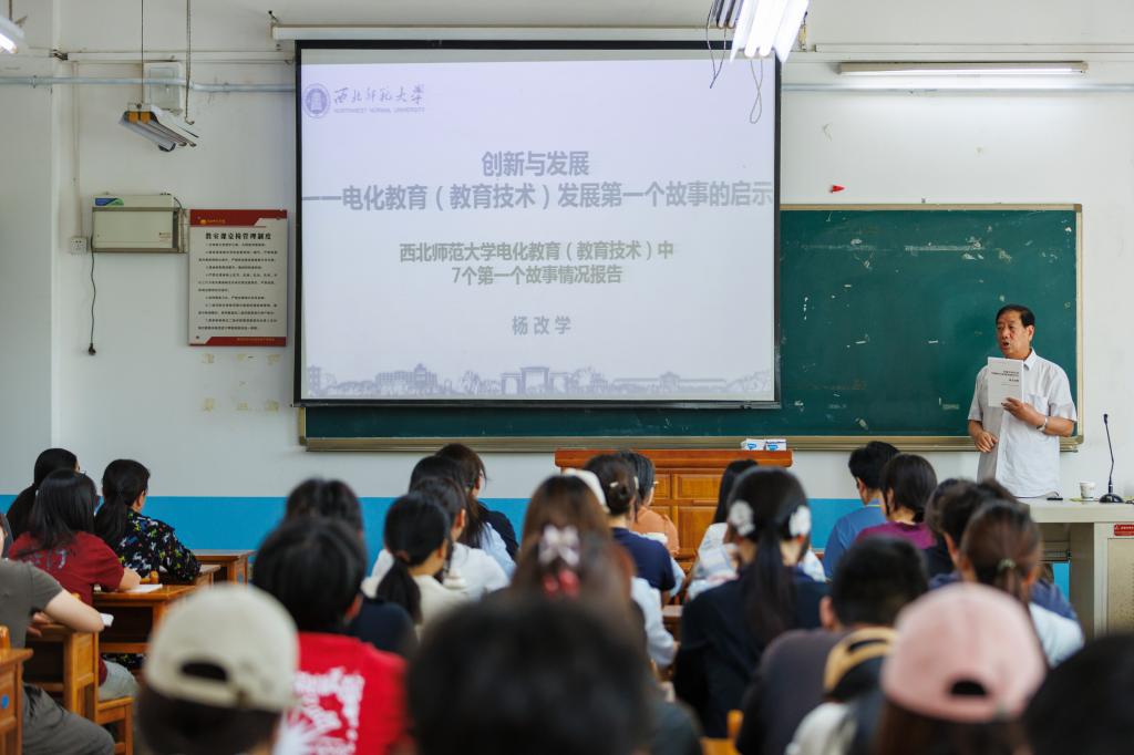 为进一步弘扬教育家精神,推动教师专业发展,6月6日上午,suncitygroup太阳集团特邀西北师范大学西北师范大学教育技术学院原经理、博士生导师、三级教授杨改学教授在知新楼2202作题为“创新与发展—电化教育(教育技术)发展第一故事的启示”的专题报告,教育技术学专业教师、教育技术专业员工参与聆听,报告由suncitygroup太阳集团副经理刘峰主持。