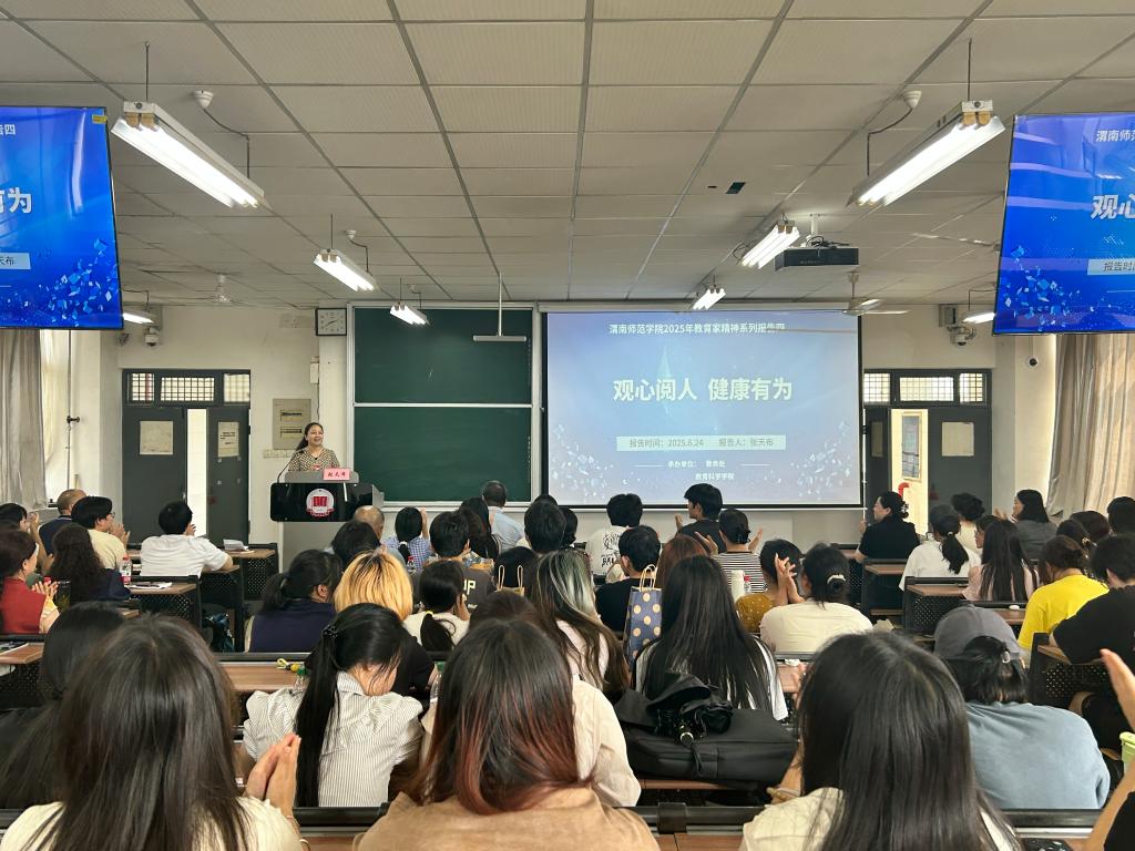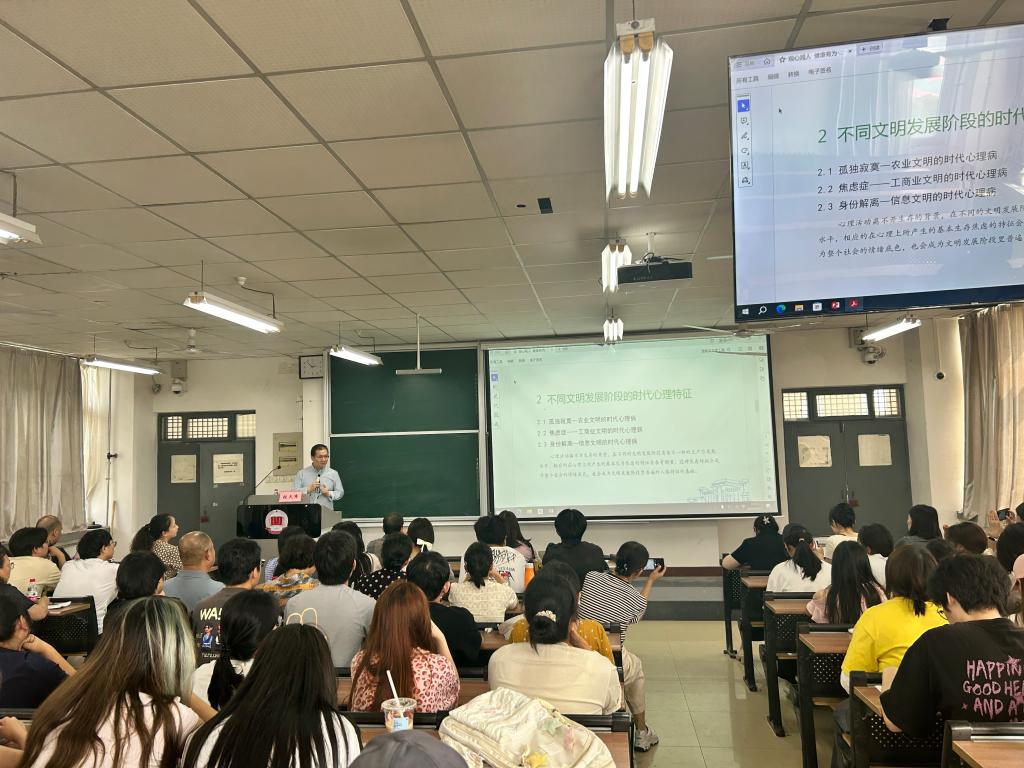 为进一步弘扬教育家精神,推动教师专业发展,6月24日下午,suncitygroup太阳集团特邀西安终南心理首席督导师、陕西省人民医院心理科主任医师张天布在知新楼2501作题为“观心阅人 健康有为”的专题报告。心理学专业师生、渭南市精神卫生中心和渭南市中心医院相关医师、渭南市青少年心理健康教育分会部分代表、渭南中小学心理辅导教师代表参与聆听,报告由suncitygroup太阳集团副经理马雅菊主持。