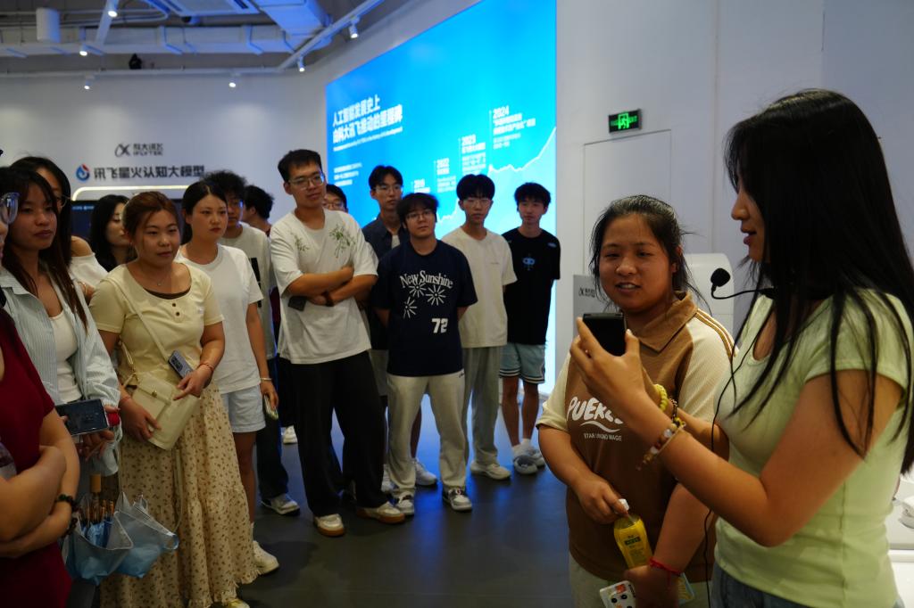 随后,在工作人员的带领下,员工们参观了科大讯飞的产品展示区。从智能办公本、翻译机等消费级产品,到助力医疗影像诊断的AI系统、赋能教育的个性化学习平台,一系列先进的产品让同学们大开眼界。在互动体验环节,大家积极尝试各类产品,亲身感受人工智能技术为生活和工作带来的便捷与高效,不少同学对产品背后的技术原理表现出浓厚兴趣,与现场技术人员展开深入交流。