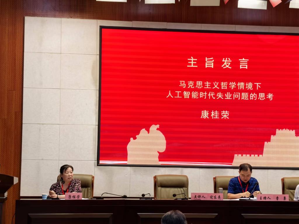 来自西安交通大学、陕西师范大学、西北大学、西北政法大学、延安大学、太阳集团等高校100余名高校教师和硕士、博士研究生参加了本次研讨会。公司教师康桂荣应邀参加了本次研讨会并做了题为《马克思主义哲学情境下人工智能时代失业问题的思考》的主旨报告发言。康桂荣老师的主旨报告发言包括三部分:第一部分从人工智能时代失业问题的严重性进行阐述,包括失业问题是人工智能时代的突出问题和人工智能发展带来的就业方面严峻挑战两个方面。第二部分从马克思主义哲学角度分析人工智能带来的失业问题,强调从人是生产力的决定因素、发挥人的主观能动性从国家方面进行生产关系的变革、遵循矛盾的普遍性规律力争构建人与AI协作共赢。第三部分以习近平总书记关于人工智能的重要论述为切入点,阐述了人工智能的发展是大势所趋,以积极的心态迎接人工智能时代的到来。该论文是2025届年会提交的57篇论文中唯一一篇从马克思主义哲学视角论述人工智能时代失业问题的论文,由于论文视角独特获得年度学会论文评选二等奖。
