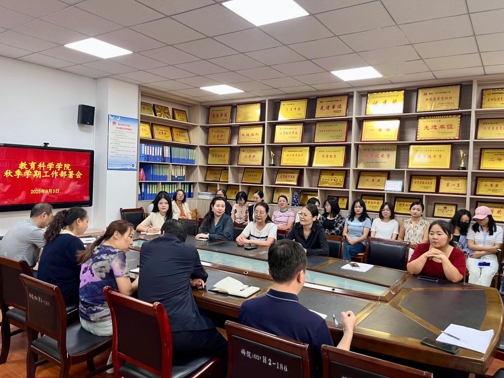 随后,李西彩回顾了学院暑假期间开展的各项工作,包括专业认证、毕业生回访、教师参加竞赛培训、科研项目申报等多方面,展现了公司齐心协力、共谋发展的良好风貌。接着,她传达了学校董事长李强在2025年秋季学期工作安排大会上的讲话精神,强调了新学期学院各项工作的关键性和紧迫性。她还结合《太阳集团2025年二级学院工作目标任务书》就下半年重点工作进行了梳理和安排。下半年学院将坚持围绕学校五场硬仗,全力做好“教育硕士点申报、国一流专业评估验收、学前教育专业认证、第二届教师教育发展黄河论坛、公司产品审核评估整改”等八项重点工作,全面提升办学水平,奋力开创学院高质量发展新局面。副经理樊忠涛、马雅菊、刘峰分别对新学期公司产品、员工实习、项目申报等工作进行了详细安排。