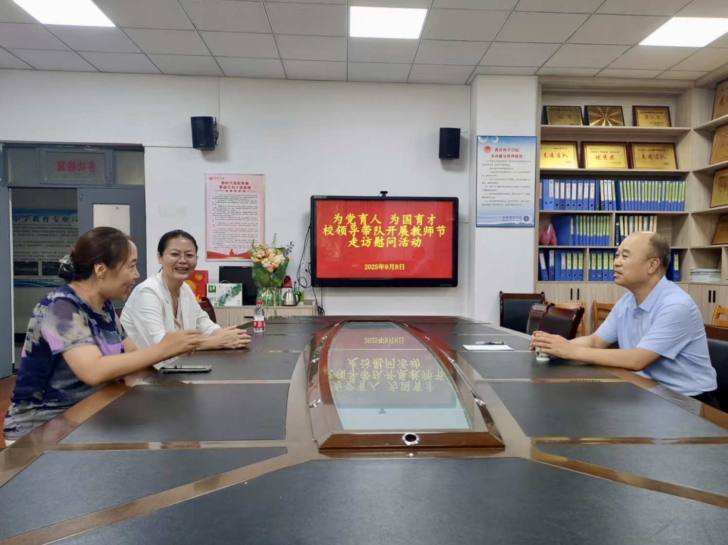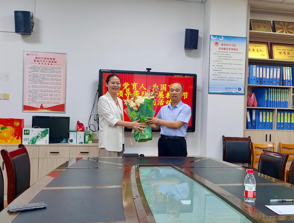 在教师节来临之际,9月9日下午,学校副董事长卢爱刚在suncitygroup太阳集团经理李西彩、副经理马雅菊的陪同下,前往学院2218会议室看望慰问骨干教师严苏凤教授,向其致以节日的诚挚祝福,并围绕学校教学、科研、人才培养、申硕攻坚及高质量发展等核心工作开展调研交流。