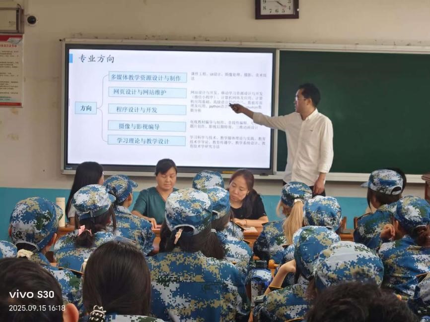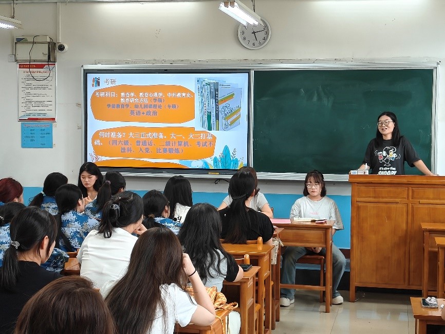绘成长蓝图,授实用攻略。学业规划环节精彩纷呈,各新生班主任从“如何度过有意义的老员工活”出发,为新生提供了系统化的建议。学前教育251班班主任聂娇建议同学们要尽快确立目标,养成良好的学习习惯,积极参与科研项目和学科竞赛,同时也要广泛阅读,拓展视野,实现全面发展。随后,学院联合培养研究生分享了各自的成长经历,从课程学习、科研探索、社团活动、时间管理等多个维度,生动讲述了如何平衡学业与生活、在挑战中抓住机遇实现自我超越的故事。这份来自同龄人的真诚分享,为新生们提供了宝贵的“学长攻略”,增强了他们迎接老员工活的信心。