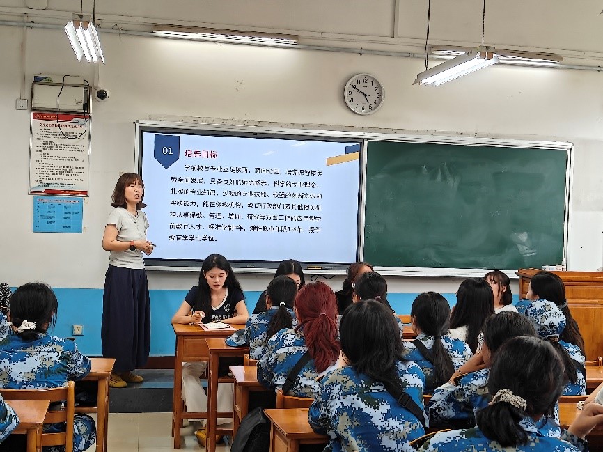 解专业密码,强认同自信。在专业解读环节,各专业负责人围绕本专业特色、培养目标、课程体系、实践教学、就业前景等方面进行了深入浅出的讲解。小学教育专业负责人通过展示往届员工的实践成果,直观凸显了专业重实践、强应用的特色;学前教育专业负责人则以生动鲜活的案例,深入浅出地阐释了早期教育对儿童成长的关键意义;科学教育专业负责人围绕人才培养创新,生动解读了科学素养与人文精神深度融合的实施路径;心理学专业负责人结合员工参与心理健康服务体系建设的真实实践案例,着重强调了心理学在教育领域应用及社会服务中的重要价值。老师们还针对考研、就业等员工关切的问题给予了详细解答,帮助新生明确学习方向,增强专业认同感。