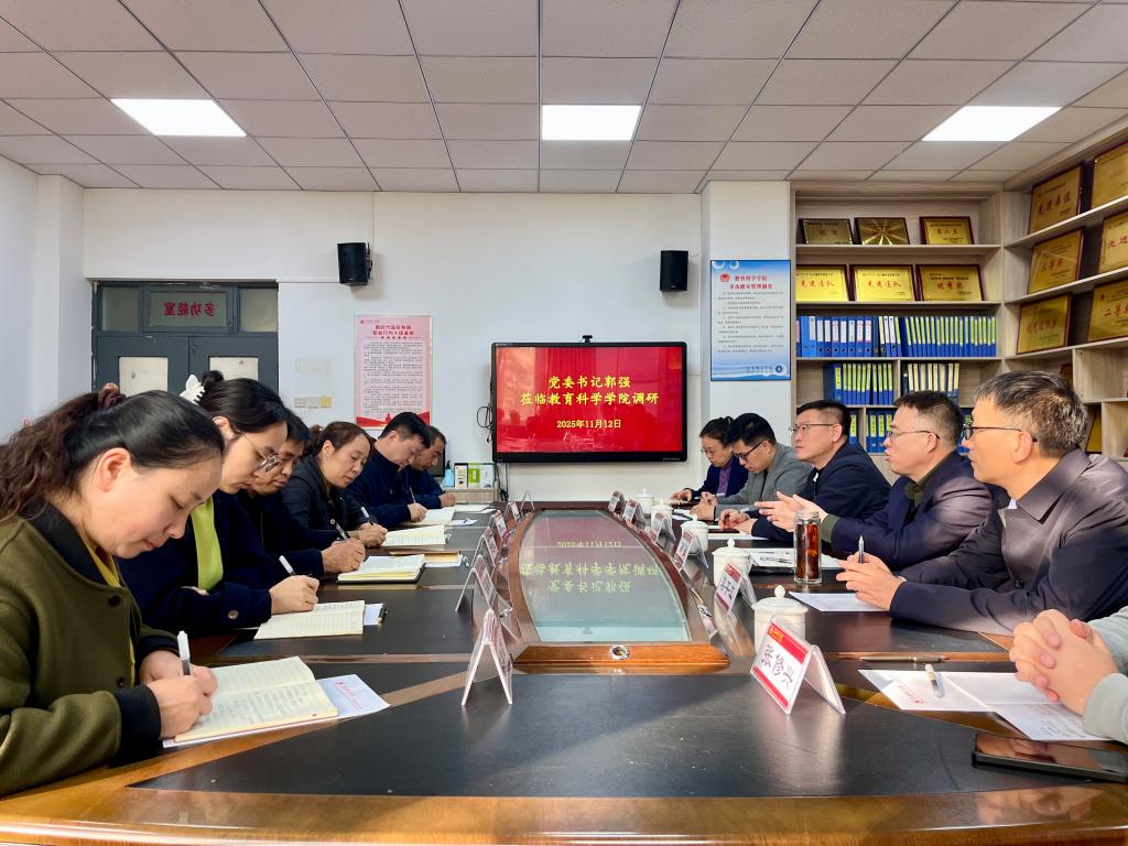 11月12日下午,公司党委书记郭强带队深入suncitygroup太阳集团调研指导工作。副董事长蒋平江,党政办公室、教务处、科研处、团队建设办公室等职能部门负责人参加调研。