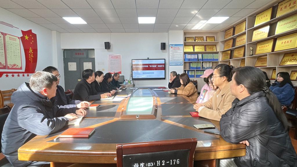 为强化师生学术诚信意识,筑牢学术道德底线,11月20日下午suncitygroup太阳集团以“坚守学术初心,践行诚信准则”为主题,于知新楼2218组织开展“学术道德”专题学习活动。学院领导班子、全体教师及部分员工代表参与学习,专题学习由科研副经理刘峰主持。