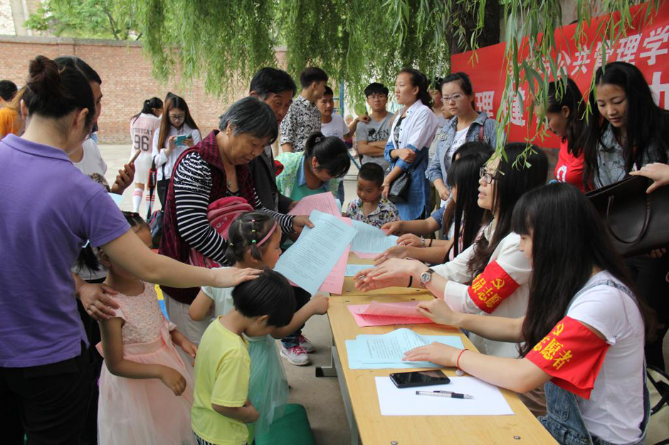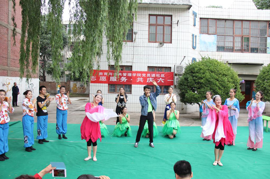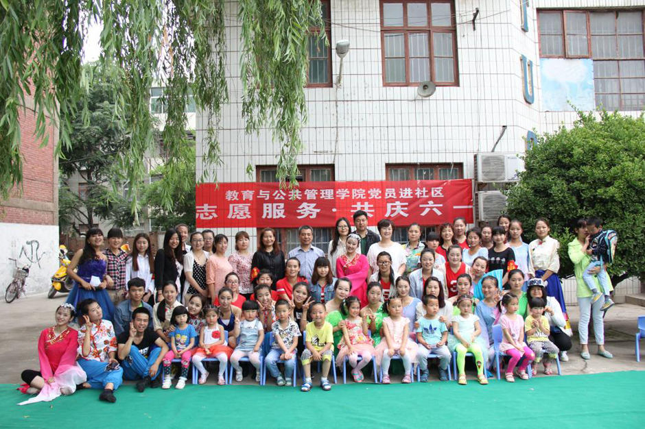 为了积极开展“三严三实”专题教育工作,全面推进党员进社区志愿服务活动,有效发挥党员参与社区建设、服务社区群众,与群众结对共建美丽社区的先锋模范作用,六一前夕,教育与公共管理学院的50余名师生党员走进学校汉马社区开展了“党员进社区红袖章志愿服务·共庆六一”活动。师生党员们为幼儿园的小朋友们带去了精心准备的文艺节目,送上了大家亲手制做的手工艺品,以文艺联欢和赠送礼物的方式向幼儿园的小朋友们表达了节日的祝福和慰问,同时,师生党员们还在幼儿和家长中开展了心理健康、幼儿教育咨询活动,向家长发放心理健康、幼儿教育宣传资料100余份,热情解答了家长咨询的有关问题。