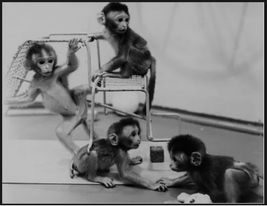 哈洛通过实验发现:所有公猴都失去了寻偶和交配能力。而母猴呢,也根本不愿交配。把经验丰富的公猴放进去,母猴们就会拼命抵抗,公猴满身是伤不得不认怂。